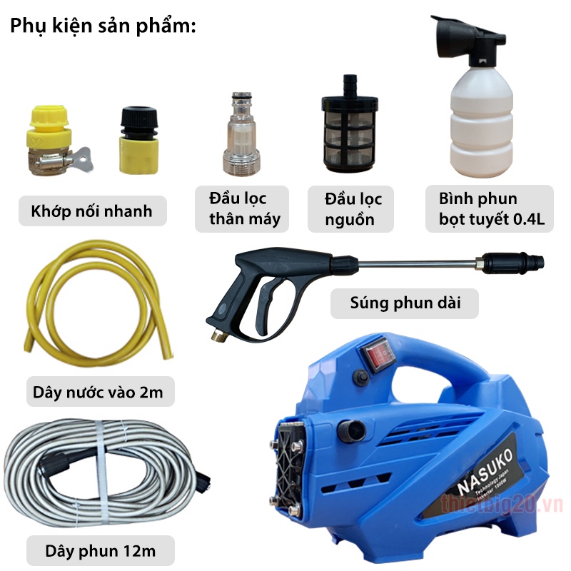 Nhà cửa & Đời sống > Dụng cụ & Thiết bị tiện ích > Dụng cụ > Máy rửa áp lực nước || Máy rửa xe mini gia đình công nghệ Nhật Bản Nasuko 1900WCòn hàng