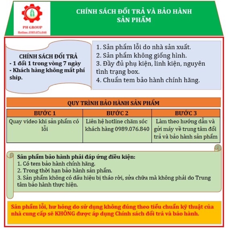 - Đổi trả mới trong vòng 7 ngày nếu lỗi nhà sản xuất (Chi phí do shop chịu hoàn toàn)
