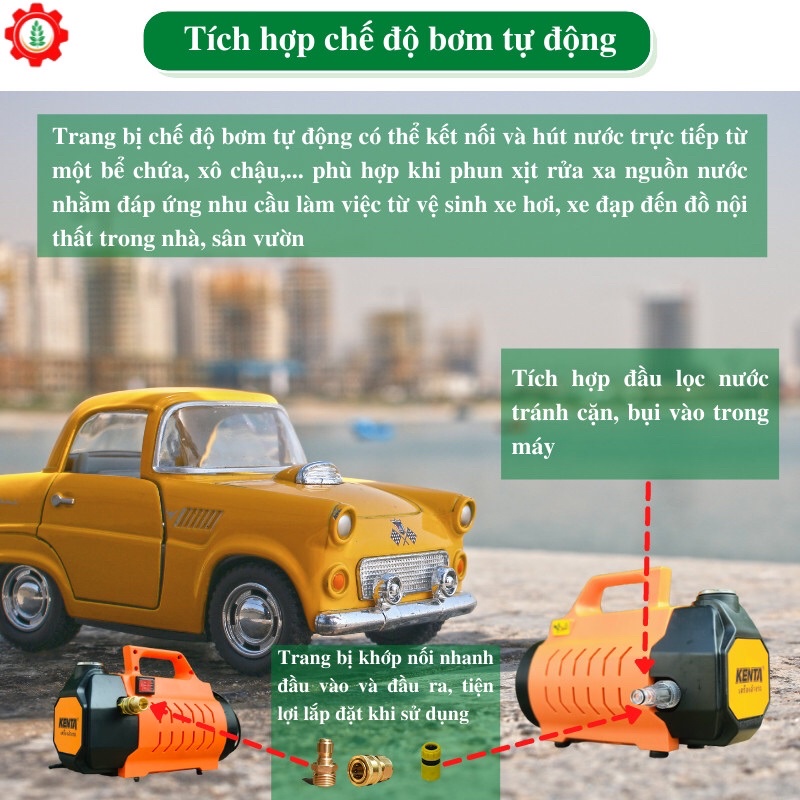 Máy rửa xe mini KENTA 2400W chuyên dùng xịt rửa xe, vệ sinh công nghiệp và nhà cửa| Công suất 2400W | Công nghệ Thái Lan