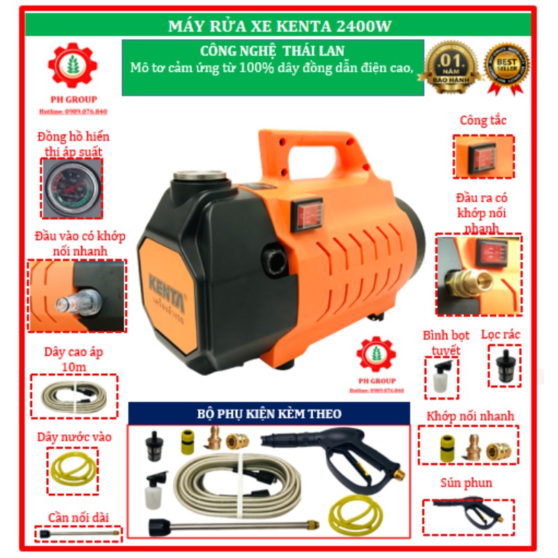 💡Chúng tôi, Cơ điện PHG tự hào giới thiệu với bạn bộ sản phẩm Máy rửa xe mini Kenta 2400 với các tính năng vượt trội, chắc chắn sẽ làm bạn hài lòng khi sở hữu sản phẩm này!✔️ THÔNG TIN CHUNG