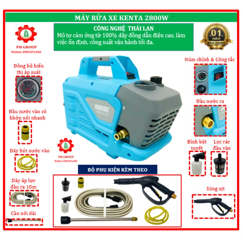 💡Chúng tôi, Cơ điện PHG tự hào giới thiệu với bạn bộ sản phẩm Máy rửa xe mini Kenta 2800 với các tính năng vượt trội, chắc chắn sẽ làm bạn hài lòng khi sở hữu sản phẩm này!✔️ THÔNG TIN CHUNG