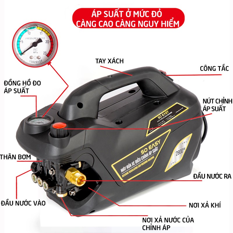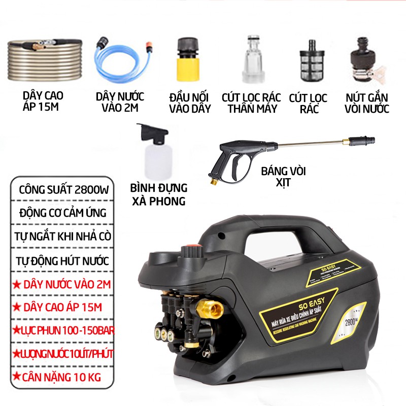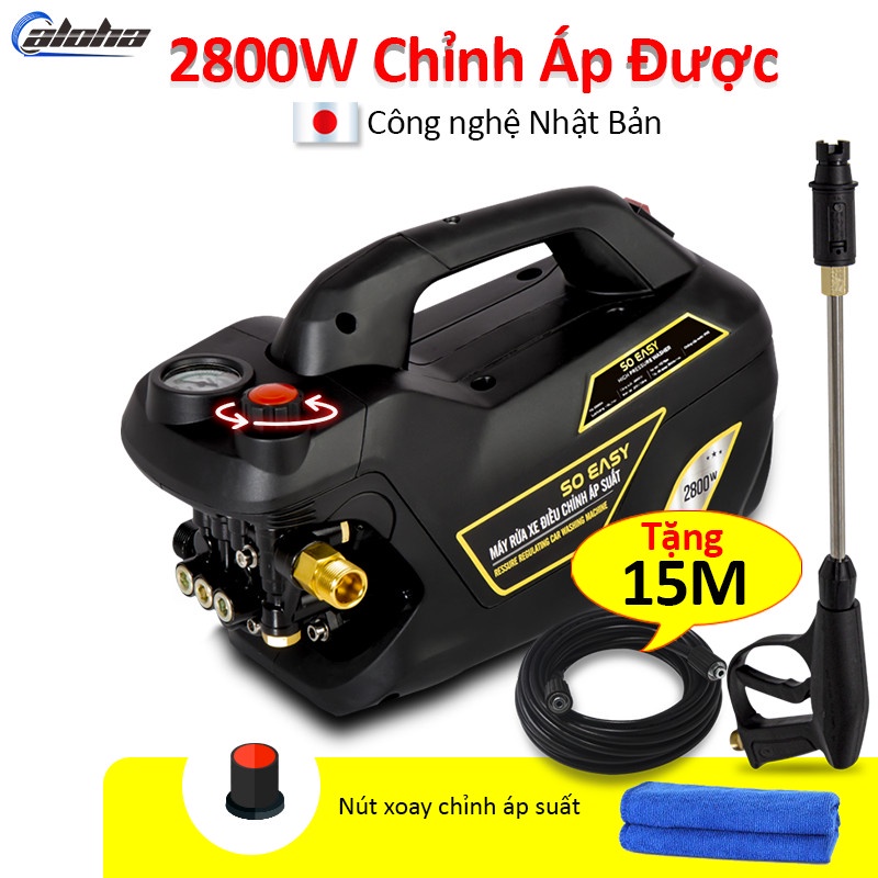 Máy bơm rửa xe mini gia đình, máy lau rửa xe cao áp công suất mạnh 2800W có thể chỉnh áp, bộ máy xịt tưới cây dễ dàng sử dụng, ống bơm nước 15m, vòi bơm áp lực cao C004B4