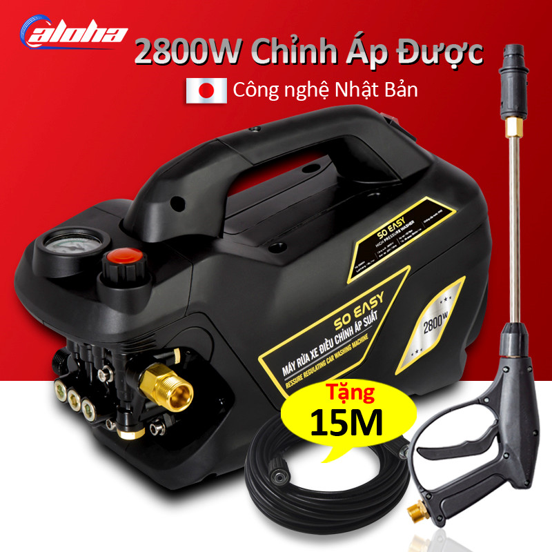Máy bơm rửa xe mini gia đình, máy lau rửa xe cao áp công suất mạnh 2800W có thể chỉnh áp, bộ máy xịt tưới cây dễ dàng sử dụng, ống bơm nước 15m, vòi bơm áp lực cao C004B4
