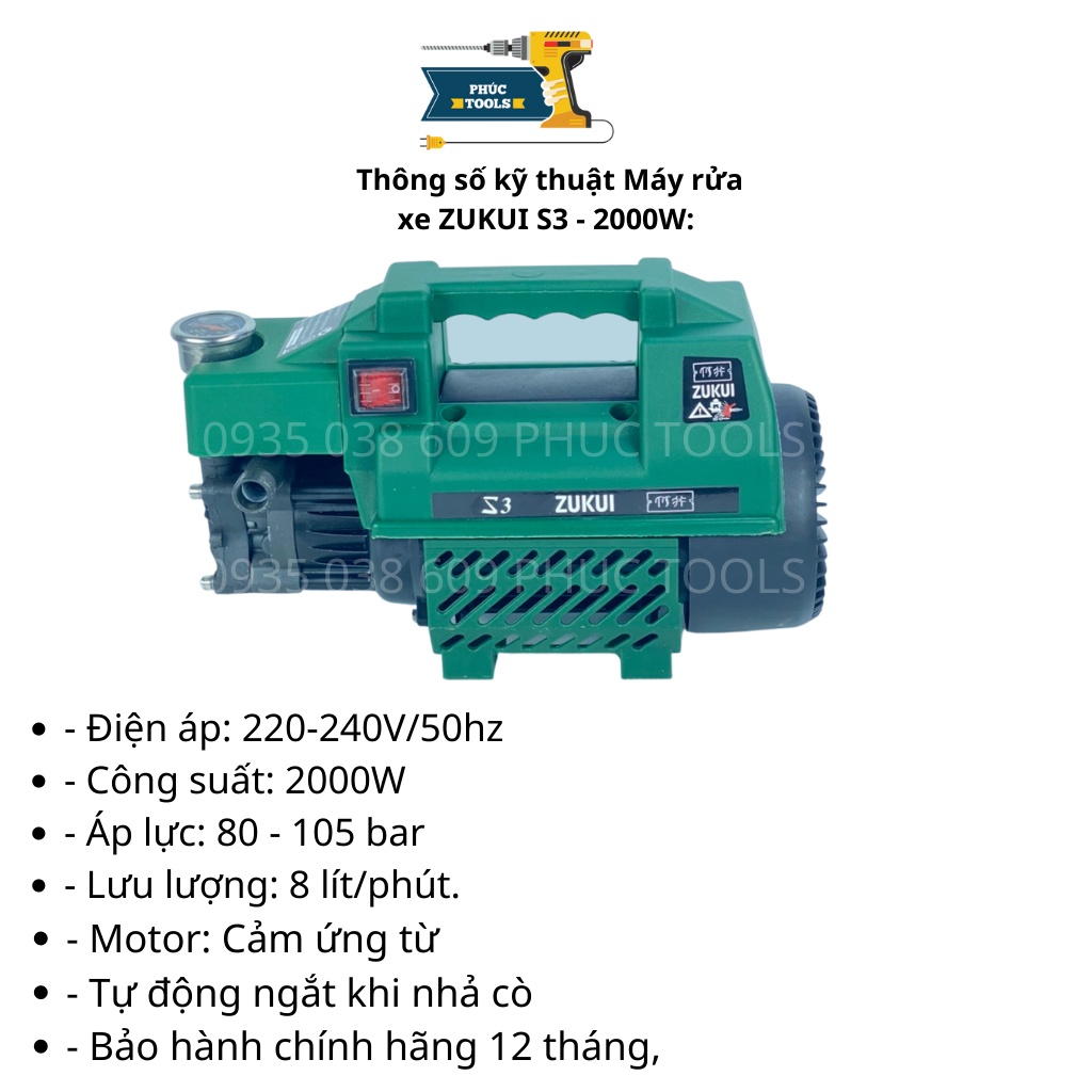 *** Máy rửa xe Zukui S3 - 2000w kèm theo phụ kiện: