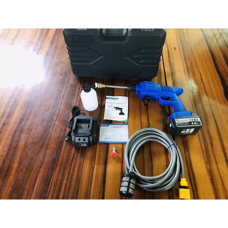 - Thân máy + Pin lithium 21V/15Ah + bộ sạc + bình bọt + thanh nối dài bằng thép không gỉ + đầu nối nhanh + ổ cắm nước 0 độ + ổ cắm nước 40 độ + ống dẫn nước 5 mét