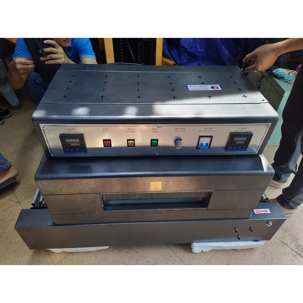 Máy rút màng co hộp bánh, hộp thuốc, hộp trà dạng băng tải, buồng rút màng co chai lọ mỹ phẩm, máy đóng gói màng co bs20