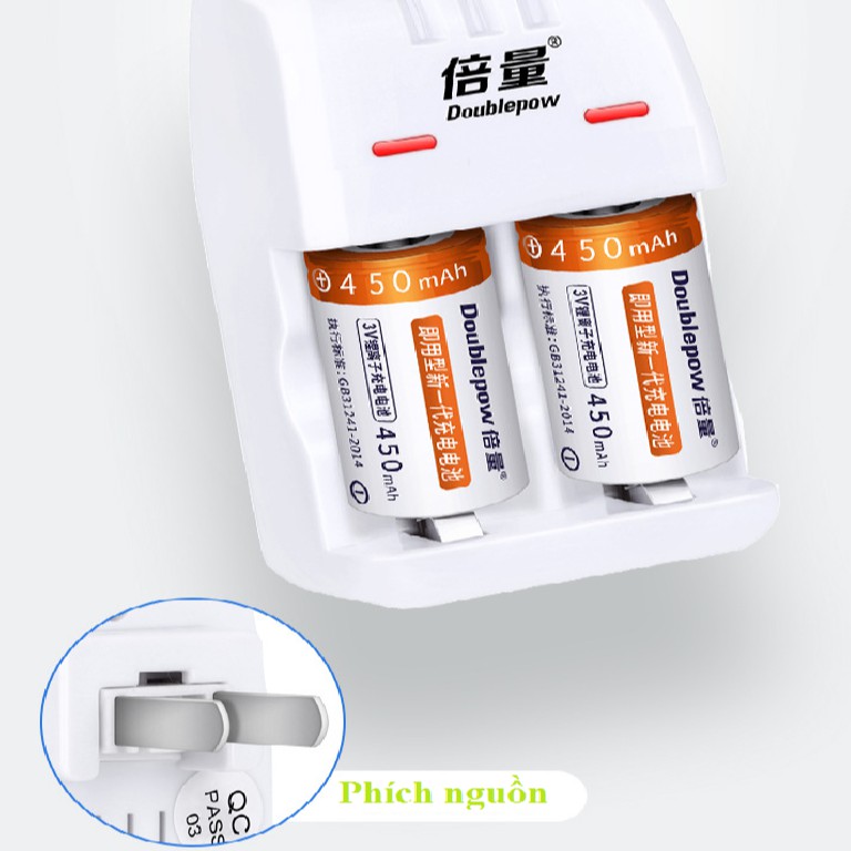 Cameras & Flycam > Phụ kiện máy ảnh > Bộ sạc pin || máy sạc kèm hộp 2 pin sạc CR123A dung lượng 450mAhCòn hàng