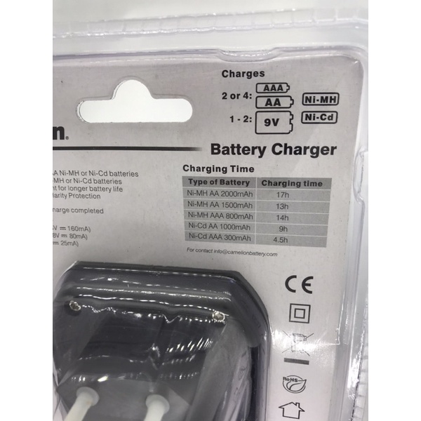 Máy Sạc Pin Đa Năng CAMELION BC0409SM sạc được Pin 2A(AA), 3A(AAA), 9V trên 1 thiết bị.Thương hiệu Camelion, xuất xứ Trung Quốc Nhập khẩu bởi Công Ty TNHH TM XNK Hợp Lực.