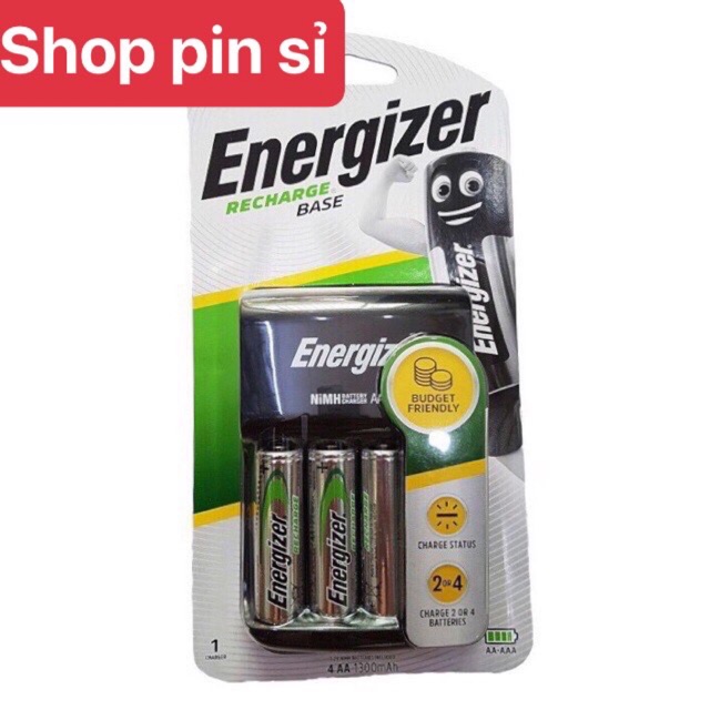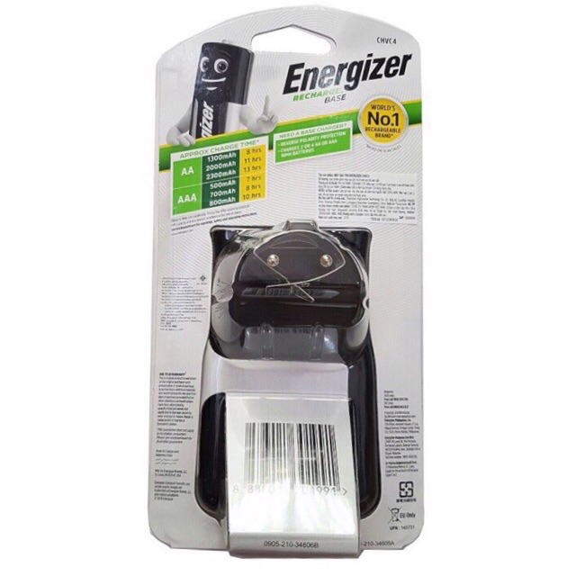 - Máy sạc Enegizer CHVC4 kèm 4 pin AA 1300mAh có thể sạc được 2 hoặc 4 pin AAA hoặc AA