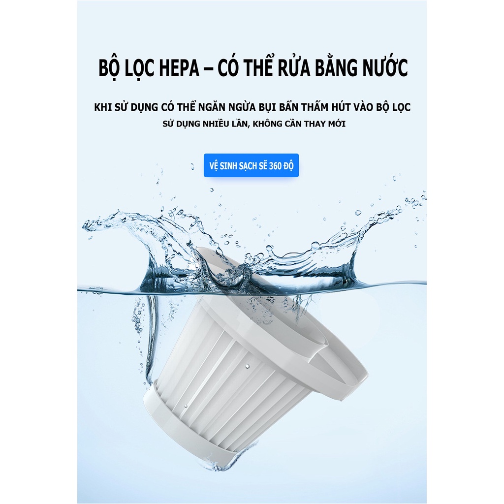 – Chức năng: hút bụi nhanh, sạch, hợp vệ sinh, công nghệ tân tiến cho ô tô, bàn phím, tủ, ghế sô fa…