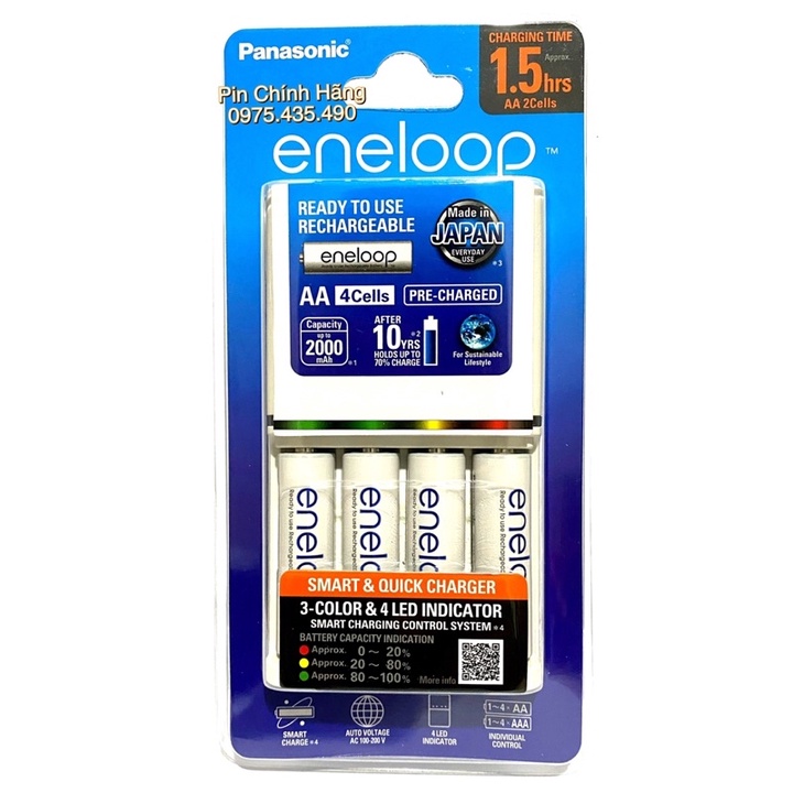 Sản phẩm kèm theo 4 viên pin panasonic Eneloop 2000mah , là dòng pin sạc thế hệ thứ 4 mới nhất hiện nay