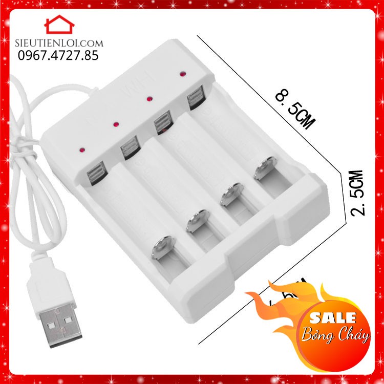 Máy Sạc Pin Tiểu AA,AAA Đa Năng 4 In 1 Xài Cổng USB