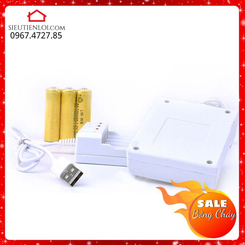 Cameras & Flycam > Phụ kiện máy ảnh > Bộ sạc pin || Máy Sạc Pin Tiểu AA,AAA Đa Năng 4 In 1 Xài Cổng USBCòn hàng