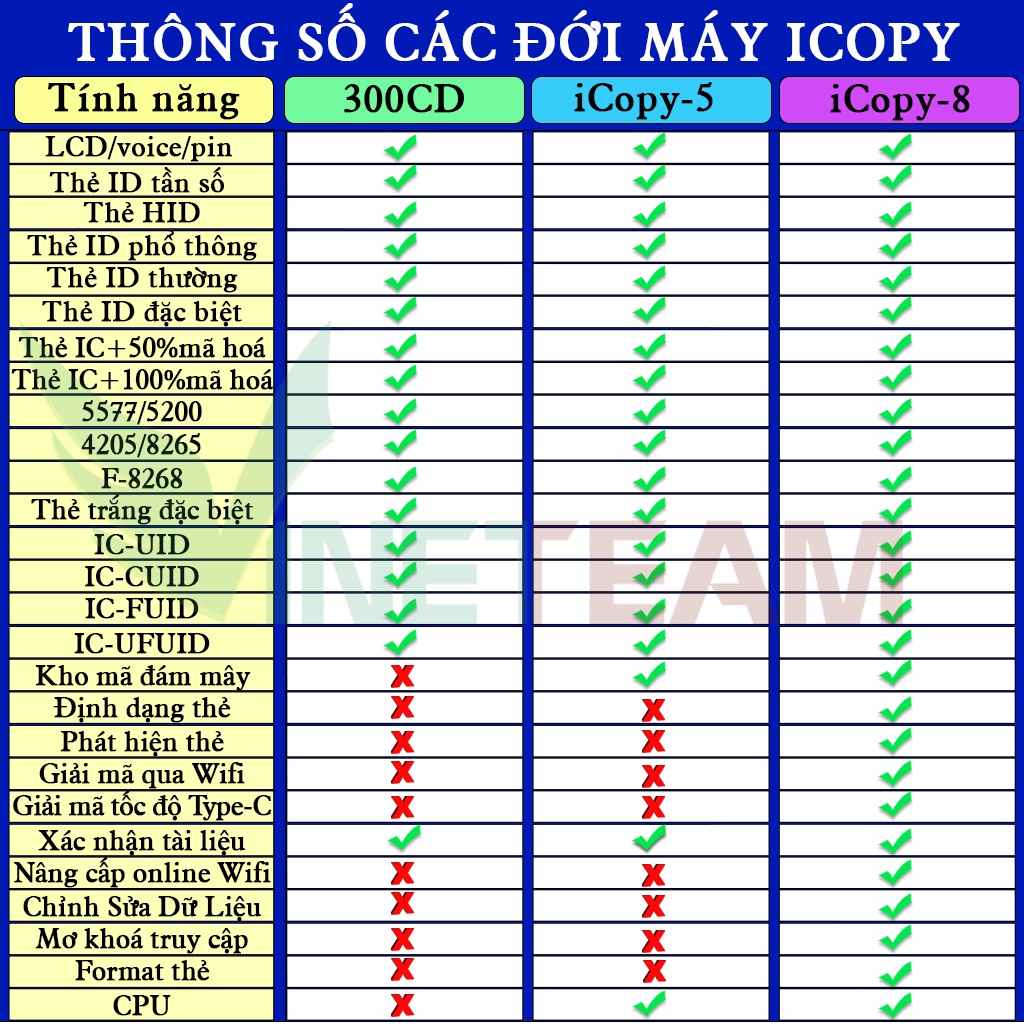 💥 Thông Số kỹ thuật của máy Sao Chép Thẻ Từ ICOPY8 :