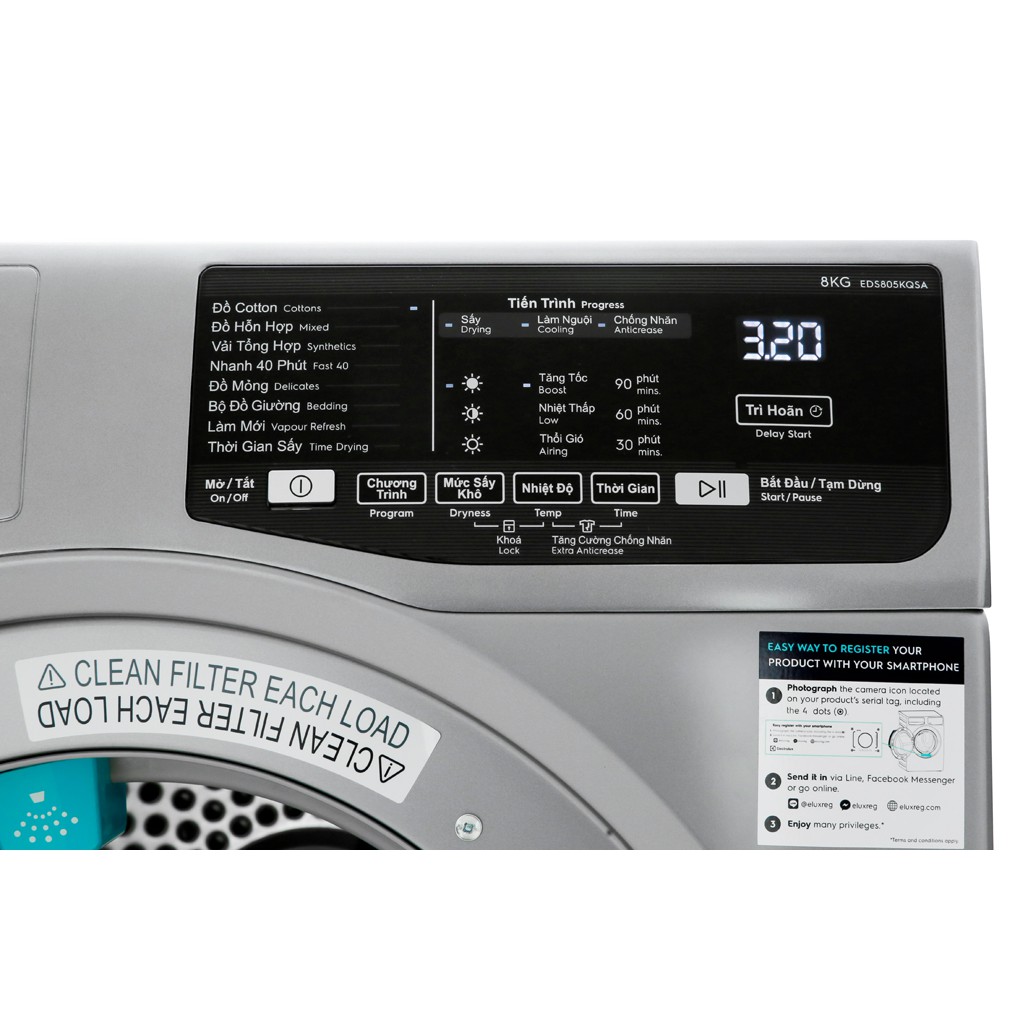 Thiết Bị Điện Gia Dụng > Thiết bị điện gia dụng lớn > Máy giặt & Máy sấy > Máy giặt || [Mã 44ELSALE1 giảm 5% đơn 3TR] Máy sấy Electrolux 8 Kg EDS805KQSACòn hàng