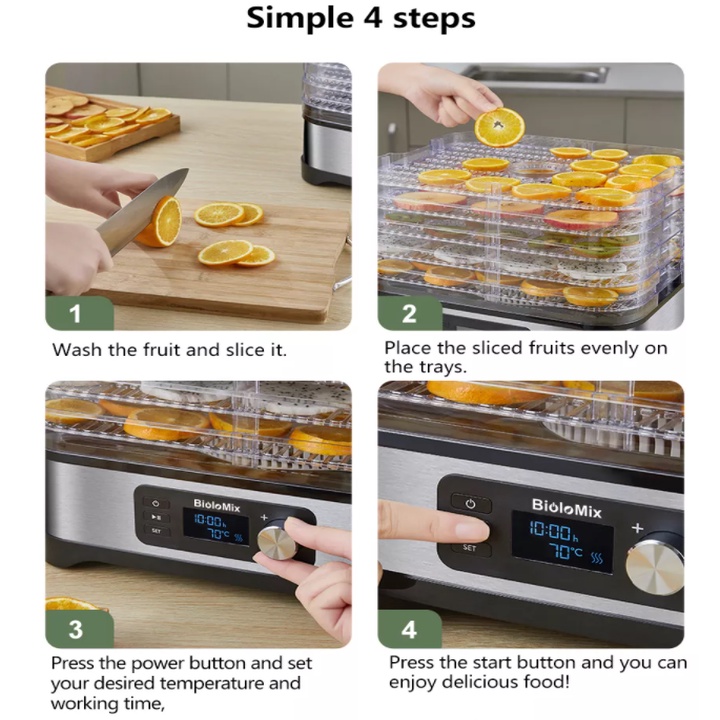 ☛ Máy sấy khô hoa quả, thực phẩm Biolomix BD-1200E giúp làm các món mứt hoa quả tại nhà thật đơn giản.