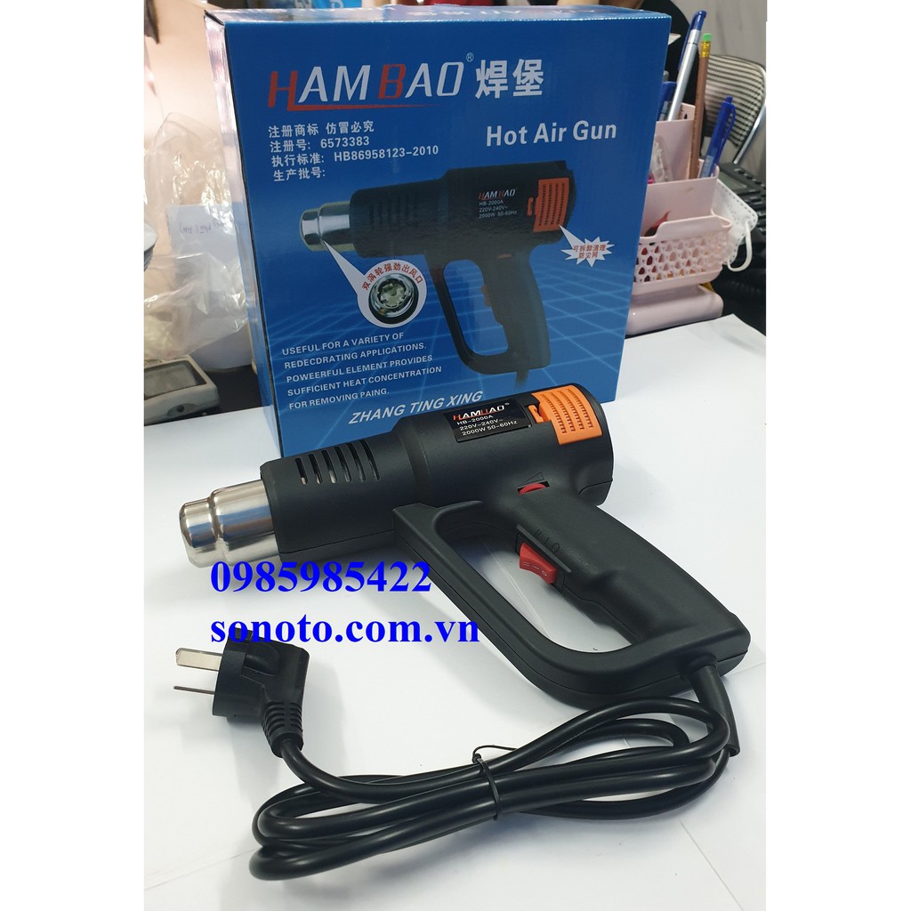 Máy sấy sơn ô tô xe máy hiệu Hambao - máy khò nhiệt 2000W - máy sấy nhiệt thổi hơi nóng đa công dụng