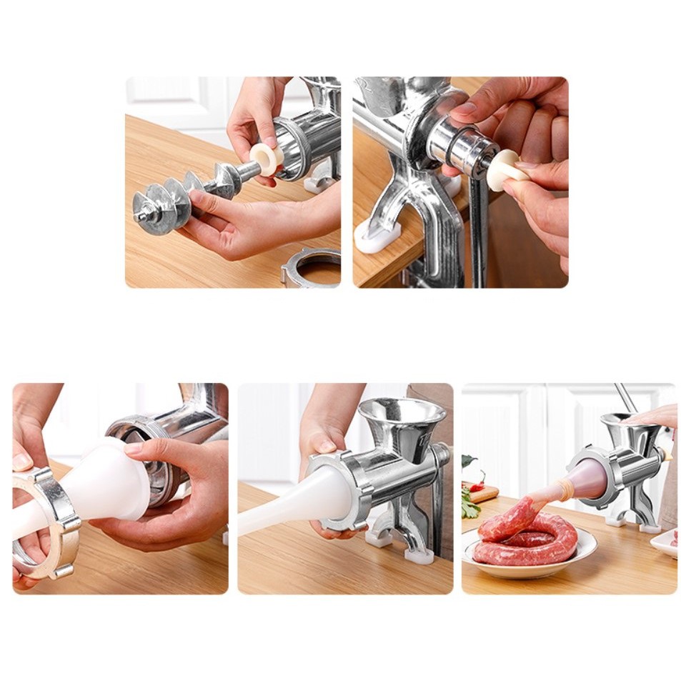 Máy say thịt bằng tay nhồi xúc xích lạp sườn - Máy xay thịt đa năng bằng gang nhồi xúc xích siêu bền siêu tiện lợi . .