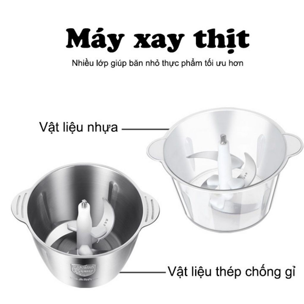 Máy Xay Thịt Đa Năng, Xay Rau Củ, Xay Hoa Quả Cối Inox 304 (2L)