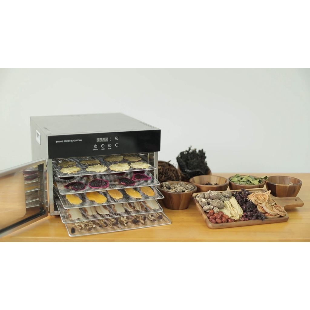 Với nhiệt độ cài đặt dao động trong khoảng 30-90o C, máy sấy này hoạt động cũng tương tự như việc mang nguyên liệu đi phơi nắng. Điểm khác biệt là chúng ta có thể kiểm soát vấn đề an toàn vệ sinh, đồng thời không cần bận tâm đến vấn đề thời tiết (ví dụ mưa bão), không cần phải đợi nắng nữa.