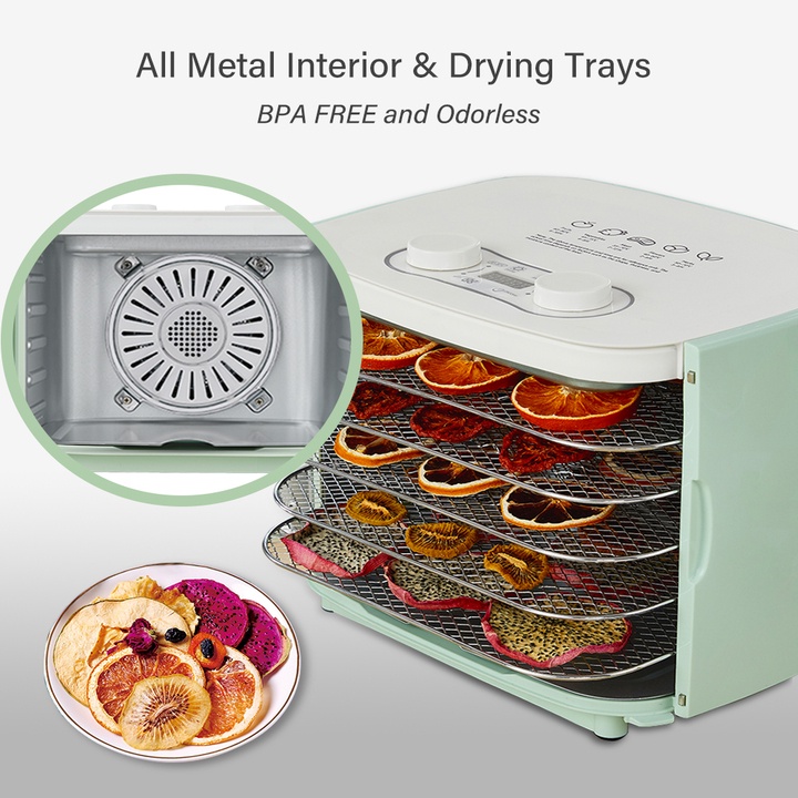 ▶ Không khí nóng được lưu thông tuần hoàn nên thực phẩm sẽ được sấy khô một cách đồng đều. Với máy sấy BioloMix BFD0108, các thực phẩm sau khi sấy khô vẫn giữ nguyên hương vị, màu sắc, mùi thơm, vitamin và các khoáng chất vốn có.