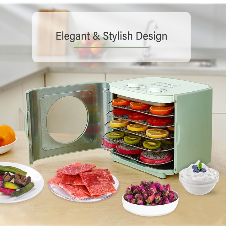 ▶ Với núm cơ điều khiển được đặt ở mặt trên để bạn có thể dễ dàng điều chỉnh nhiệt độ cũng như thời gian sấy để tạo ra các loại trái cây sấy dẻo, sấy giòn hay sấy dai phù hợp với khẩu vị của bạn.