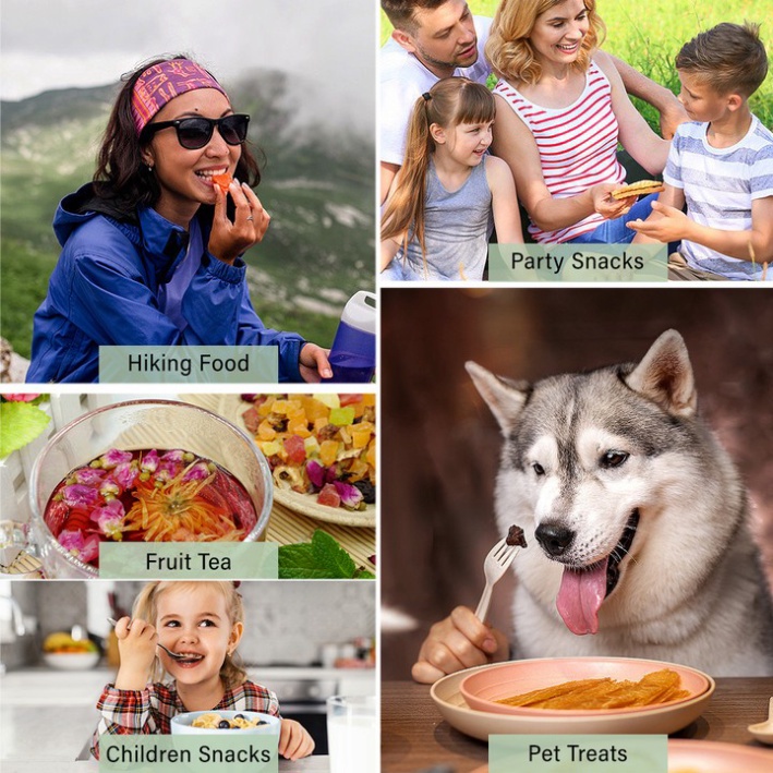 - Không khí nóng được lưu thông tuần hoàn nên thực phẩm sẽ được sấy khô một cách đồng đều. Với máy sấy BioloMix BFD0108, các thực phẩm sau