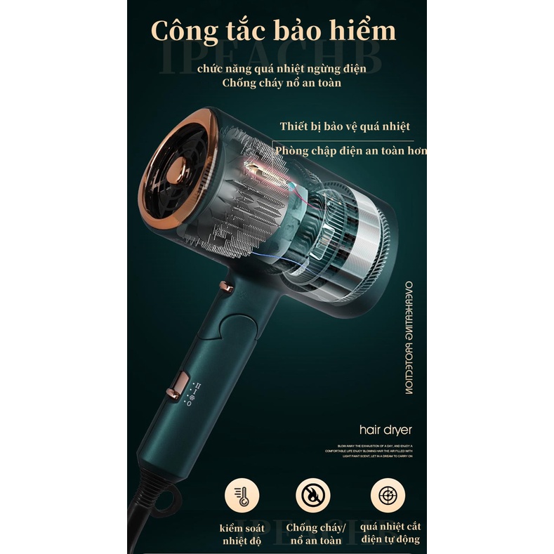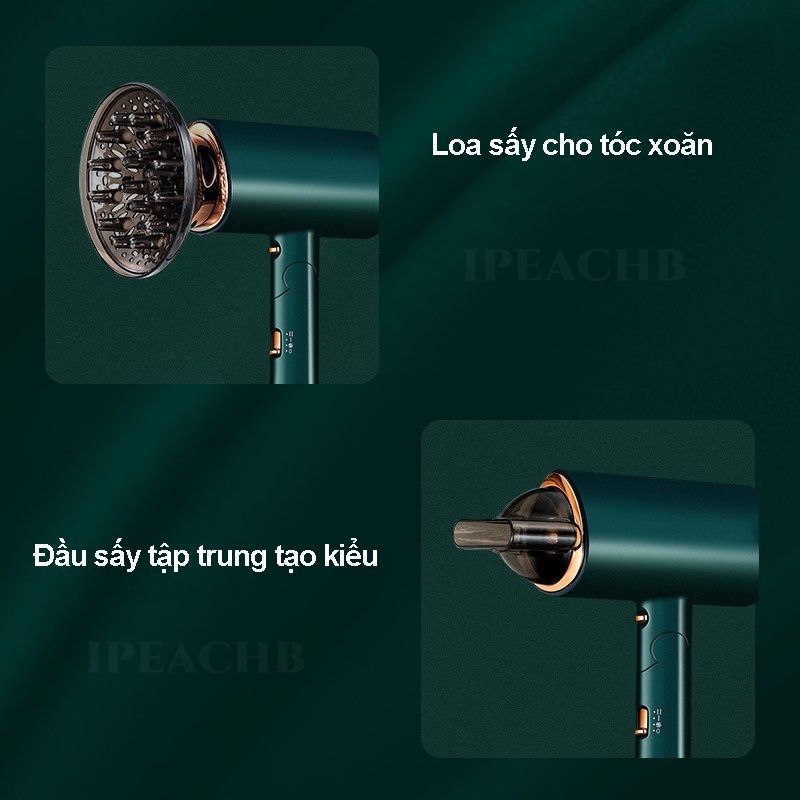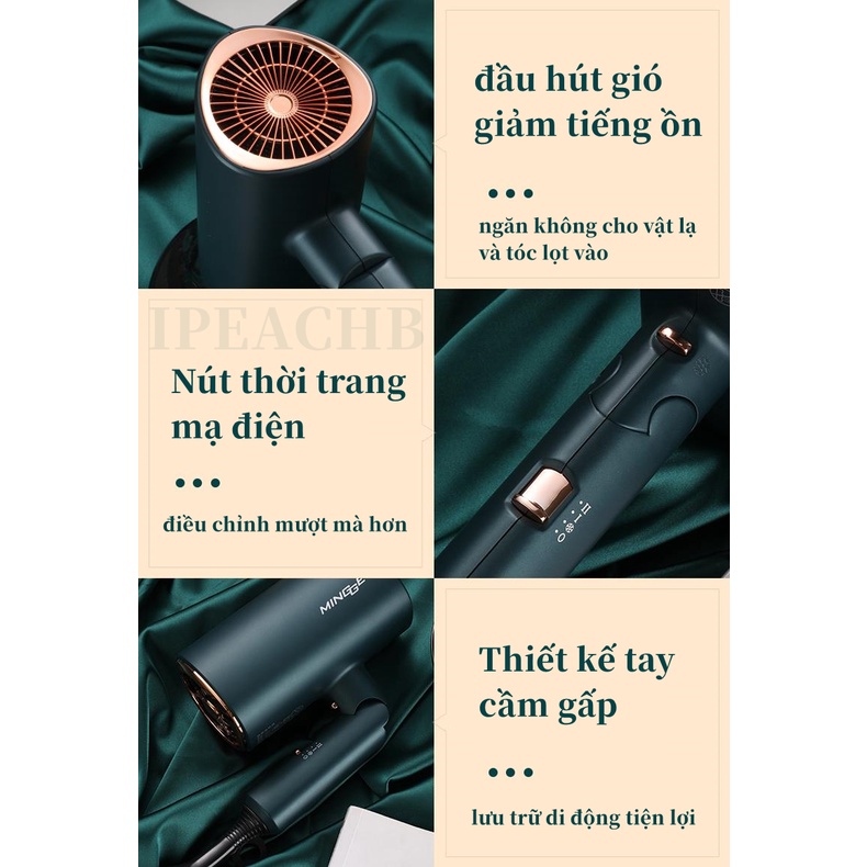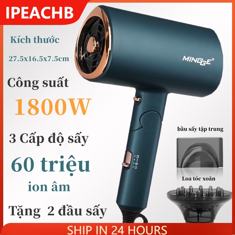 Máy sấy tóc MenGe 1800W tặng kèm 2 đầu sấy tạo kiểu với 3 chức năng sấy ion âm chăm sóc tóc hư tổn, 2 chiều nóng lạnh