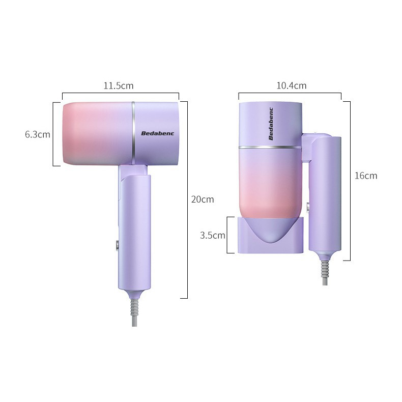 Giới thiệu Máy sấy tóc mini gấp gọn Bedabenc tạo kiểu chuyên nghiệp công suất lớn 1000W