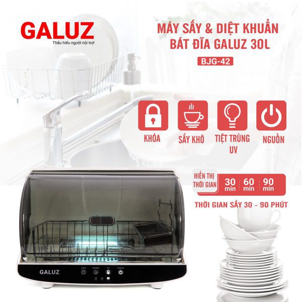 Giới thiệu [Mã 44ELSALE2 giảm 7% đơn 300K] Máy Sấy Và Diệt Khuẩn Bát Đĩa Galuz 30L BJG-40