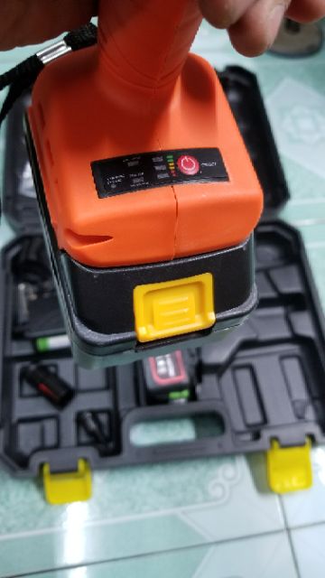 Gồm : máy, dây sạc, pin dự phòng, đầu tuýp 22, đầu gắn mũi khoan, giấy bảo hành, dây đai