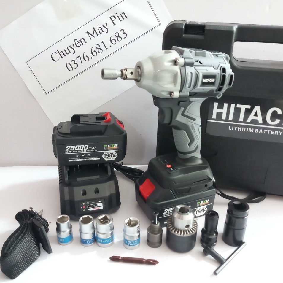 Máy Siết Bulong HITACHI 198v SUPER Hàng Loại 1 - Tặng kèm bộ phụ kiện như hình