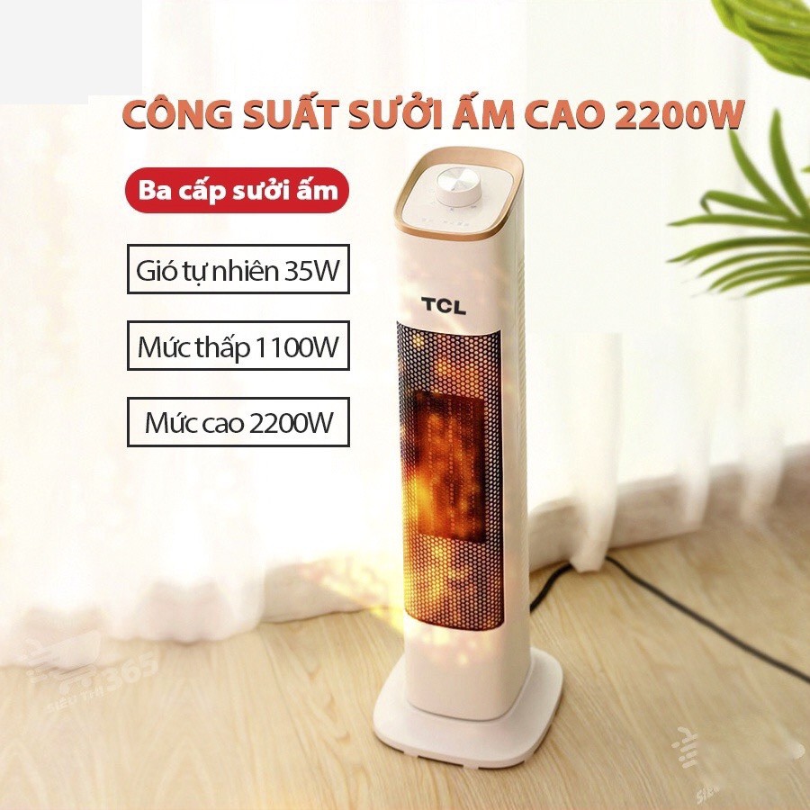 - Quạt sưởi gốm TCL dáng đứng thông minh cao cấp sử dụng công nghệ PTC (Ceramic) làm nóng an toàn bằng các nung nóng các tấm gốm bên trong máy, không đốt cháy oxy, làm nóng nhanh chóng, tiết kiện 50% điện năng so với các dòng máy sưởi khác.