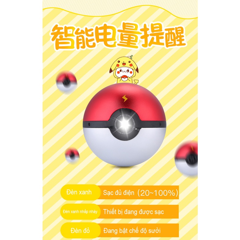Máy sưởi ấm mini cầm tay kèm sạc dự phòng cao cấp Pokemon - Dung lượng lớn 20.000 mAh