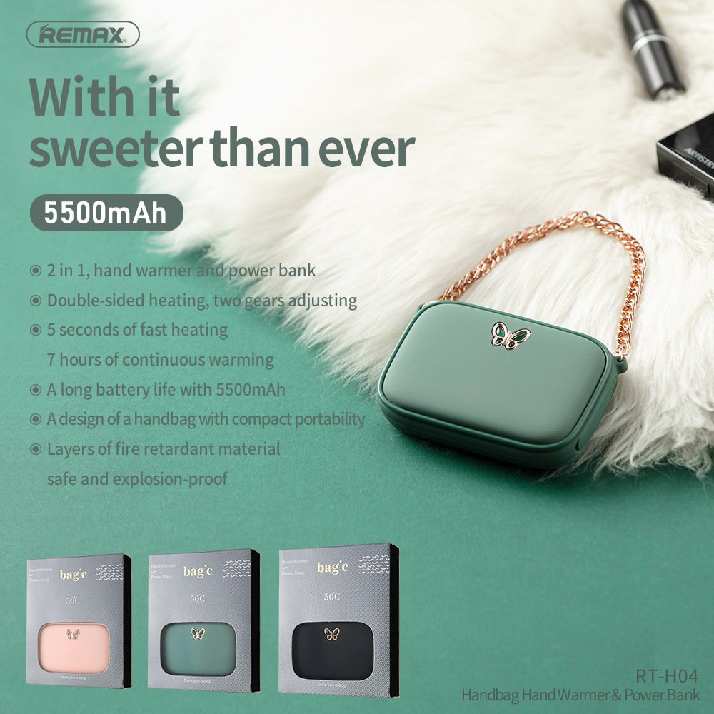 Máy sưởi ấm mini cầm tay Remax chính hãng 5500mah kiêm pin sạc dự phòng
