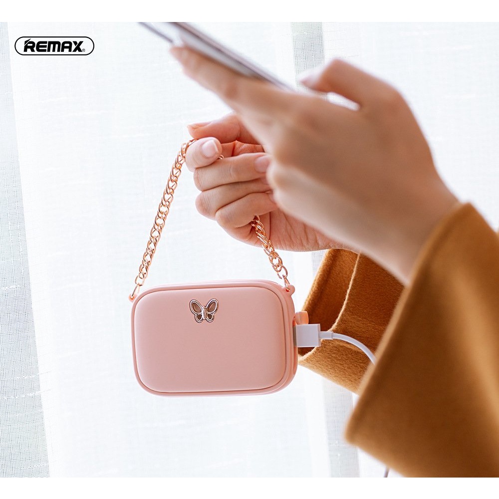 RT-H04 có thiết kế giống như một chiếc túi xách mini vô cùng xinh xắn, phụ kiện không thể thiếu cho mọi quý cô thời trang. Mọi chi tiết trên sản phẩm được thiết kế tinh tế, tỉ mỉ và hoàn hảo đến từng chi tiết. Điểm nhấn cho máy sưởi tay kiêm sạc RT-H04 của Remax đó chính là quai xách, họa tiết cánh bướm kim loại sang trọng.