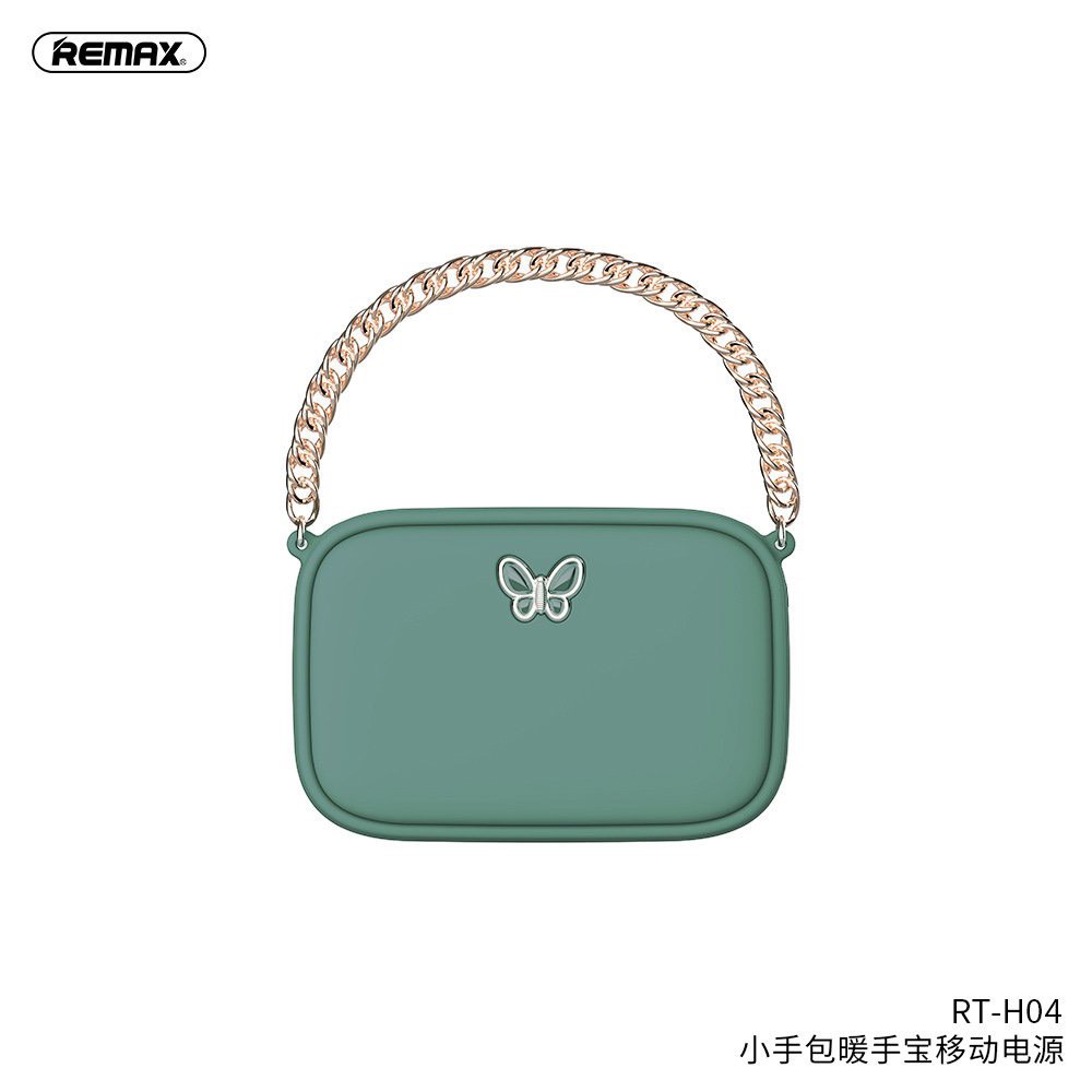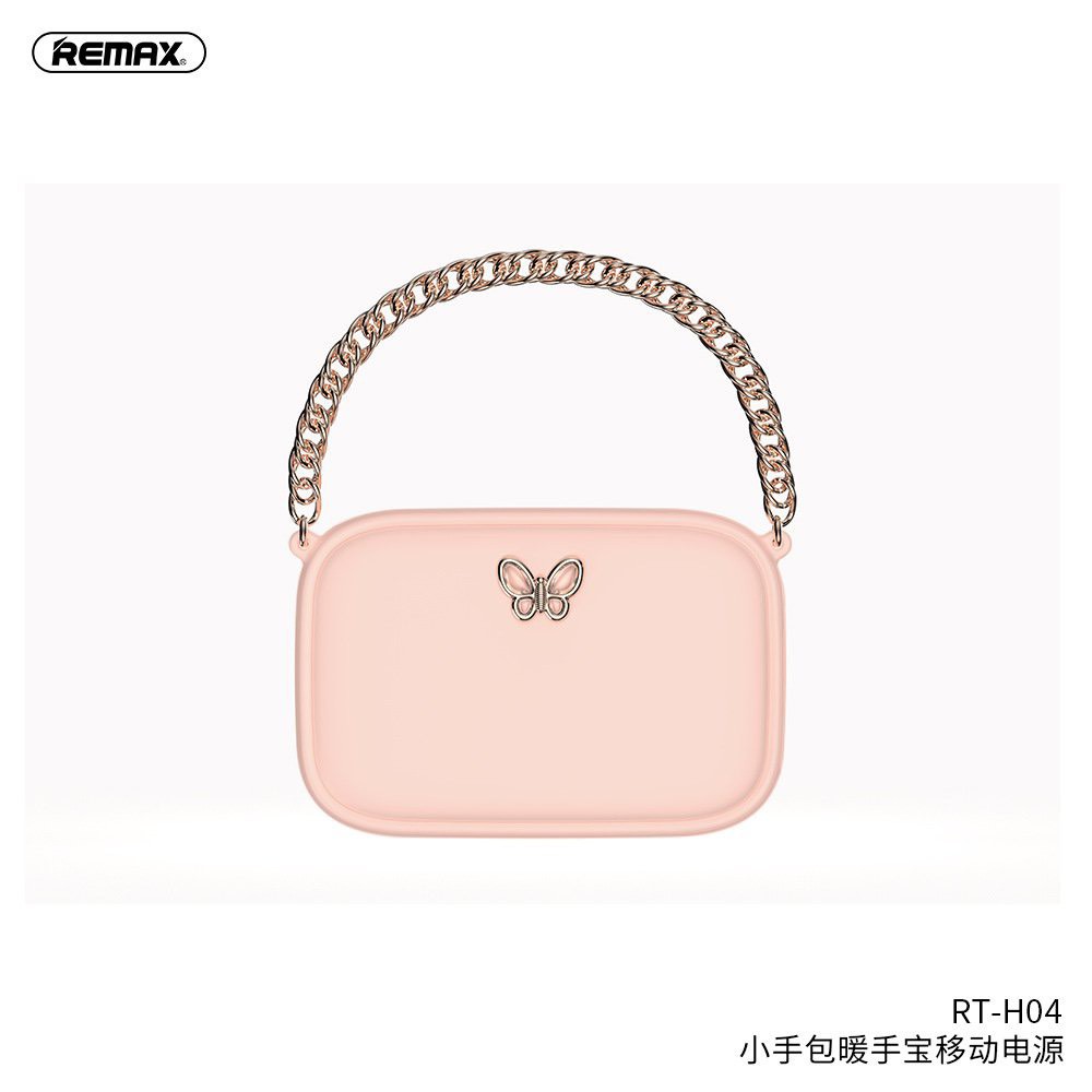RT-H04 có thiết kế giống như một chiếc túi xách mini vô cùng xinh xắn, phụ kiện không thể thiếu cho mọi quý cô thời trang. Mọi chi tiết trên sản phẩm được thiết kế tinh tế, tỉ mỉ và hoàn hảo đến từng chi tiết. Điểm nhấn cho máy sưởi tay kiêm sạc RT-H04 của Remax đó chính là quai xách, họa tiết cánh bướm kim loại sang trọng.