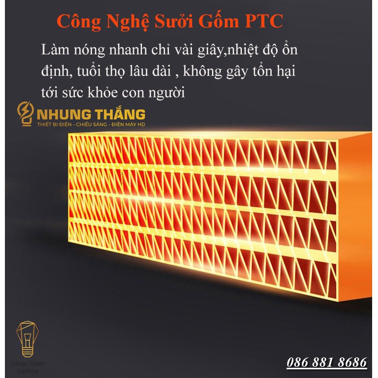 - Khi sưởi ấm, quạt sưởi gốm không đốt cháy oxy, không phát sáng, vận hành êm, tạo cảm giác dễ chịu và an toàn, đặc biệt khi sử dụng cho người già và trẻ nhỏ, không lo khô da hay viêm hô hấp.
