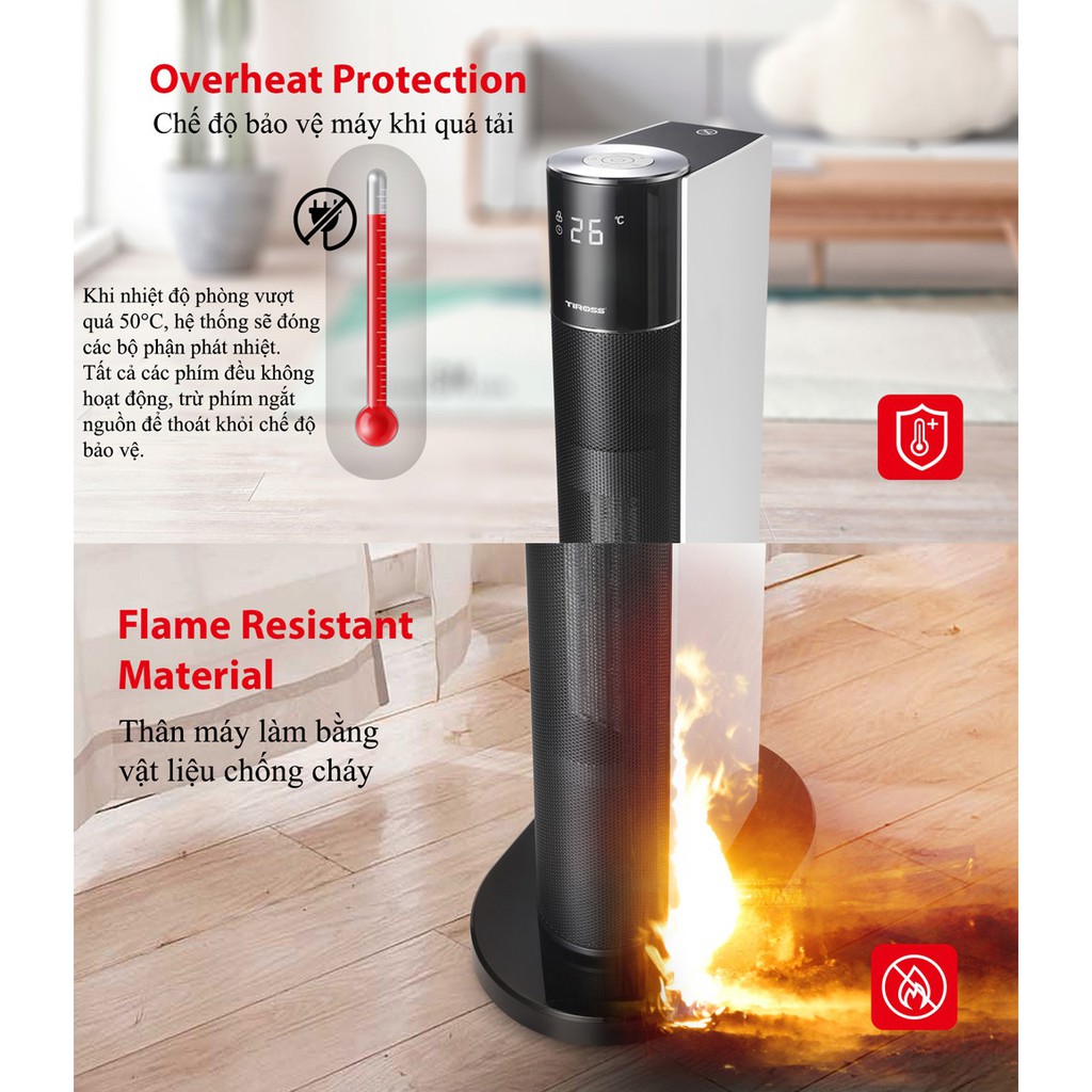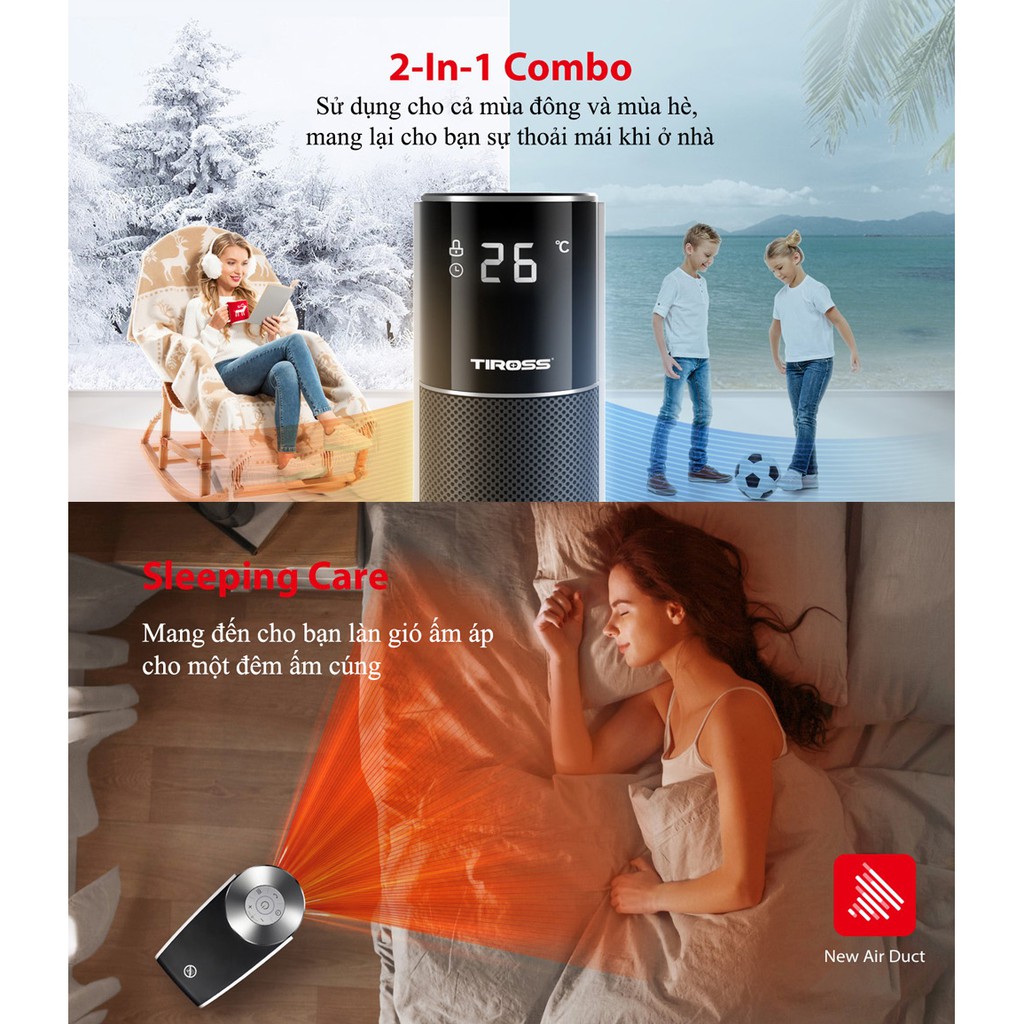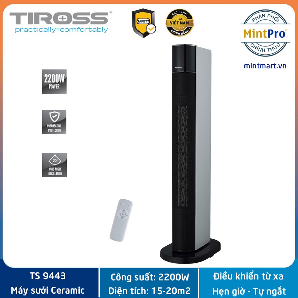 Máy sưởi Ceramic Tiross TS9443 có điều khiển từ xa, chế độ an toàn tự ngắt - Hàng chính hãng - Bảo hành 12 tháng