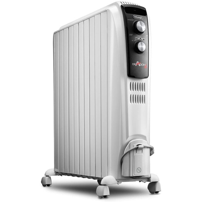 - Máy sưởi dầu Delonghi Dragon 4 sử dụng dầu làm dung môi sưởi ấm, làm ấm phòng một cách dễ chịu mà không đốt cháy không khí, không làm khô da, đảm bảo độ an toàn cho người sử dụng.