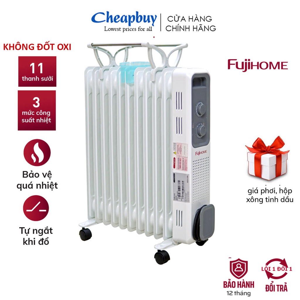 Máy sưởi dầu không đốt oxi CN Nhật Bản Nhập Khẩu Fujihome tự ngắt an toàn - Chính hãng bảo hành 1 năm