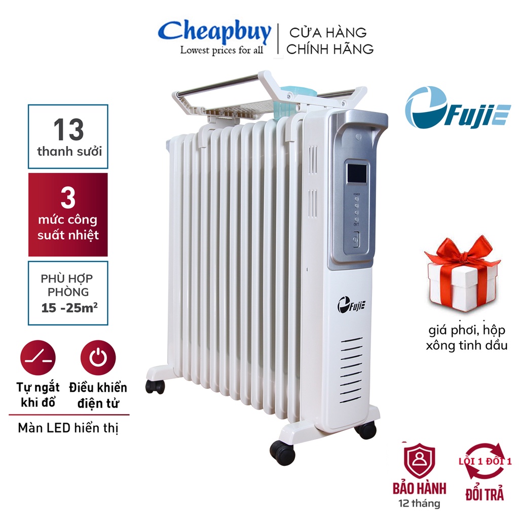 Máy sưởi dầu nhập khẩu CN Nhật Bản không khô da FUJIE OFR4413 13 thanh, sưởi điện tự ngắt không đốt oxi , BH 12 tháng