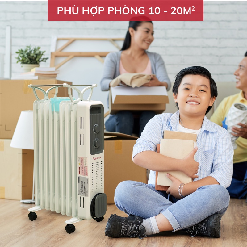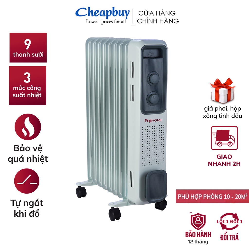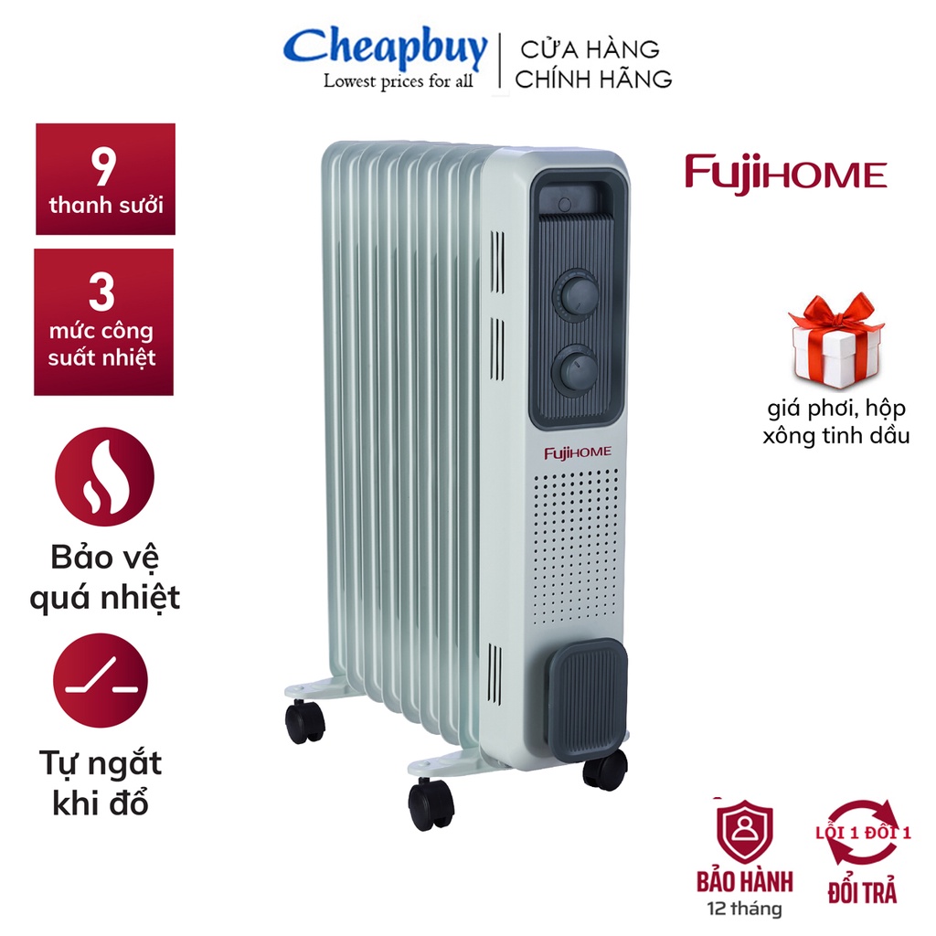 ✅ Máy sưởi dầu FUJIHOME OH849, gồm 9 thanh sưởi sử dụng phù hợp cho phòng< 20m2