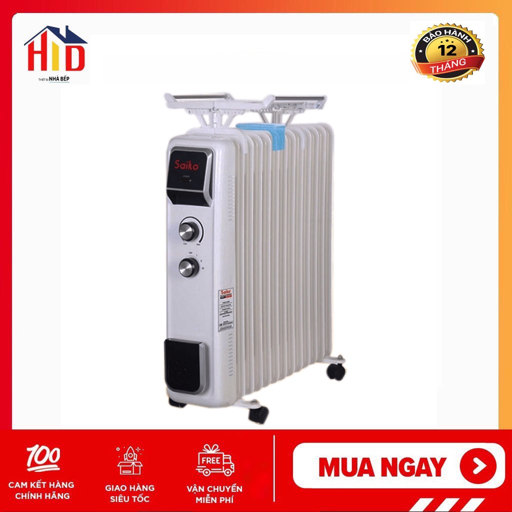 Thiết Bị Điện Gia Dụng > Thiết bị điện gia dụng lớn > Máy sưởi || [Mã ELHA22 giảm 5% đơn 300K] Máy sưởi dầu Saiko OR-7213T (13 thanh - Có giá phơi quần áo- DT 20m2 -25m2)Còn hàng