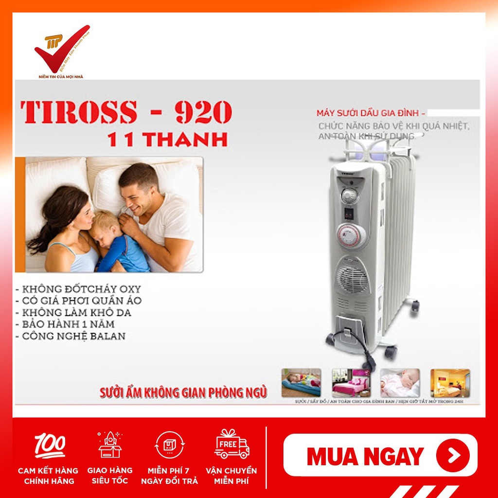 Thiết Bị Điện Gia Dụng > Thiết bị điện gia dụng lớn > Máy sưởi || [Mã ELHA22 giảm 5% đơn 300K] Máy Sưởi Dầu Tiross 11 Thanh TS920 - Hàng Chính HãngCòn hàng