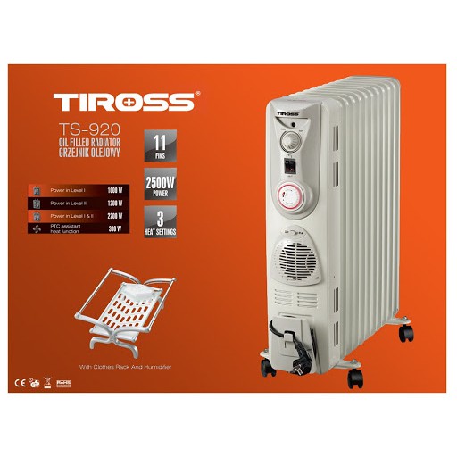 Tiross sử dụng một loại dầu đặc biệt gọi là diathermic oil, một loại dầu có tác dụng truyền dẫn nhiệt tốt và đặc biệt là không bị tiêu hao trong suốt quá trình sử dụng nên không phải thay thế hoặc đổ thêm. Sản phẩm có thiết kế thanh nhiệt gợn sóng tăng bề mặt tiếp xúc với không khí, rút ngắn thời gian truyền nhiệt, tiết điệm điện năng và chi phí