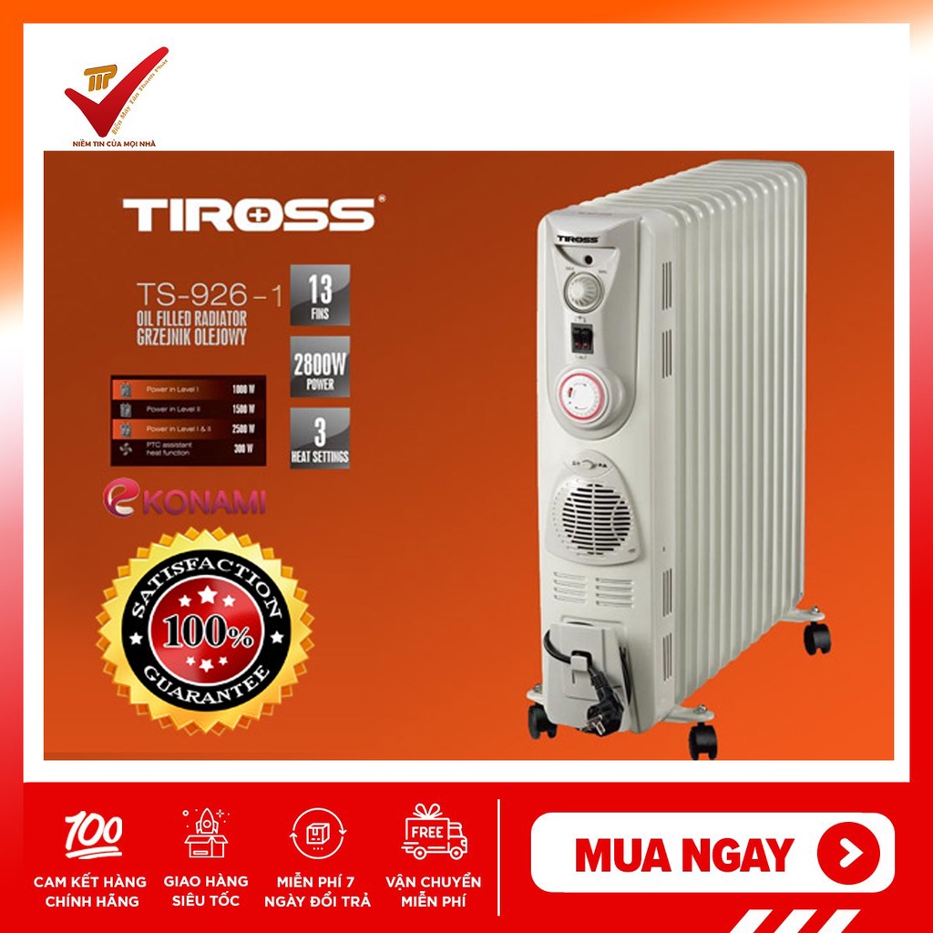 Thiết Bị Điện Gia Dụng > Thiết bị điện gia dụng lớn > Máy sưởi || [Mã ELHA22 giảm 5% đơn 300K] Máy Sưởi Dầu Tiross TS926-1 13 Thanh(Hàng Chính Hãng)Còn hàng