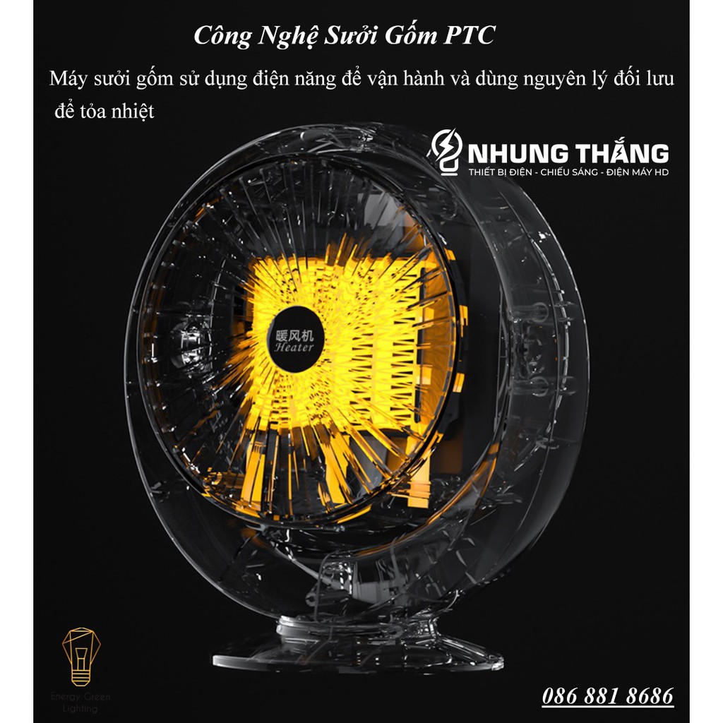 - Khi sưởi ấm, quạt sưởi gốm không đốt cháy oxy, không phát sáng, vận hành êm, tạo cảm giác dễ chịu và an toàn, đặc biệt khi sử dụng cho người già và trẻ nhỏ, không lo khô da hay viêm hô hấp.