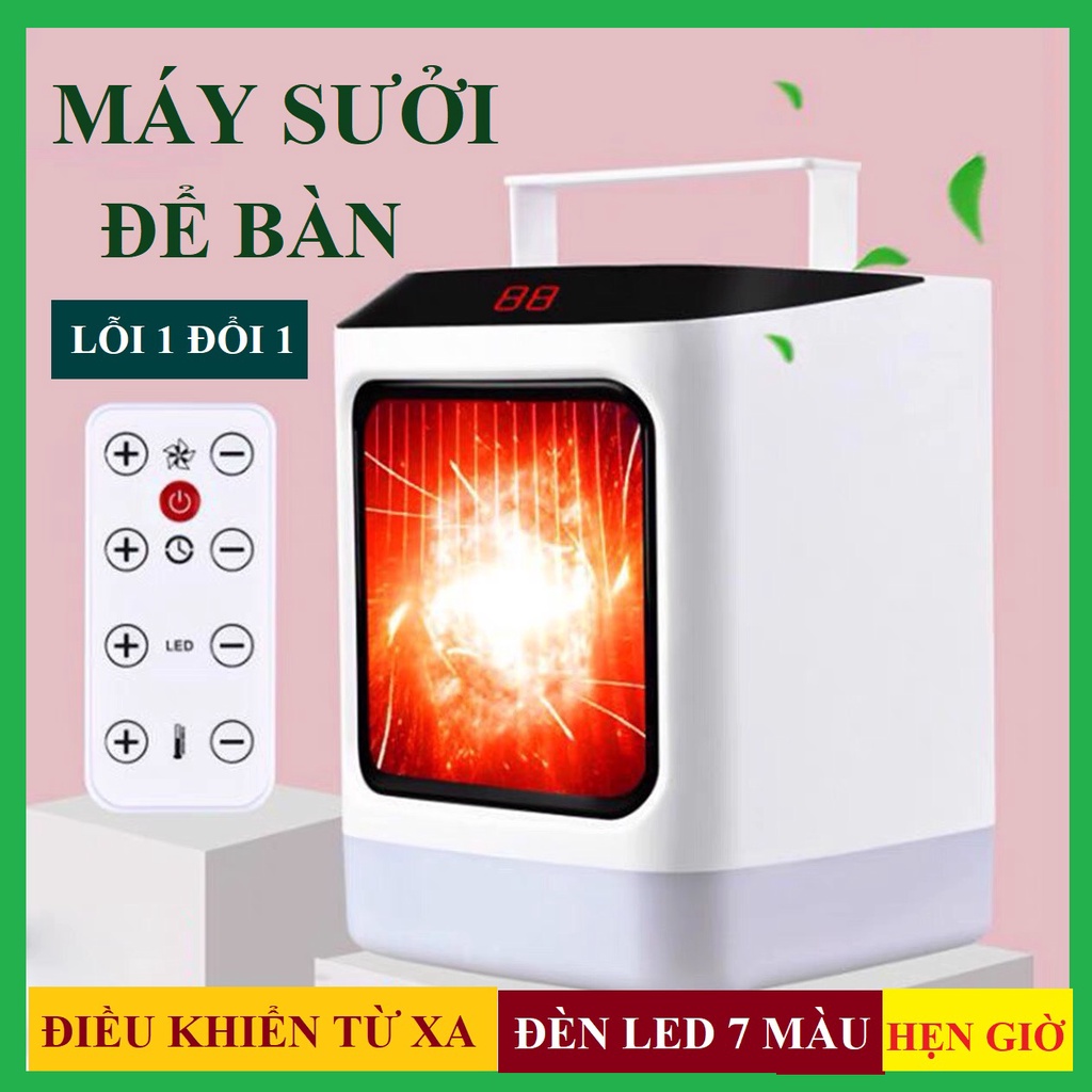 Máy sưởi để bàn có chức năng hẹn giờ, đèn Led 7 màu, an toàn, tản nhiệt tốt-------------------------------------------------------
