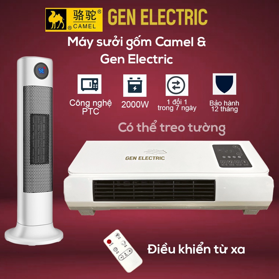 Máy sưởi gốm Camel - Máy sưởi phòng ngủ điều khiển từ xa - Dáng đứng cao cấp - Ấm áp - An toàn - Bảo hành 12 tháng